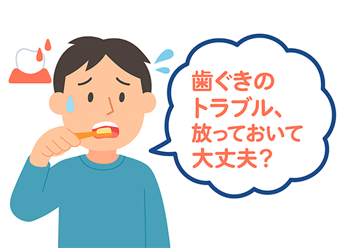歯ぐきの不調をそのままにしておくと、歯を支える歯槽骨が徐々に破壊され、やがて歯が抜けてしまうこともあります。さらに、歯周病菌は血流に乗って全身を巡り、心疾患や糖尿病などのリスクを高めることも報告されています。